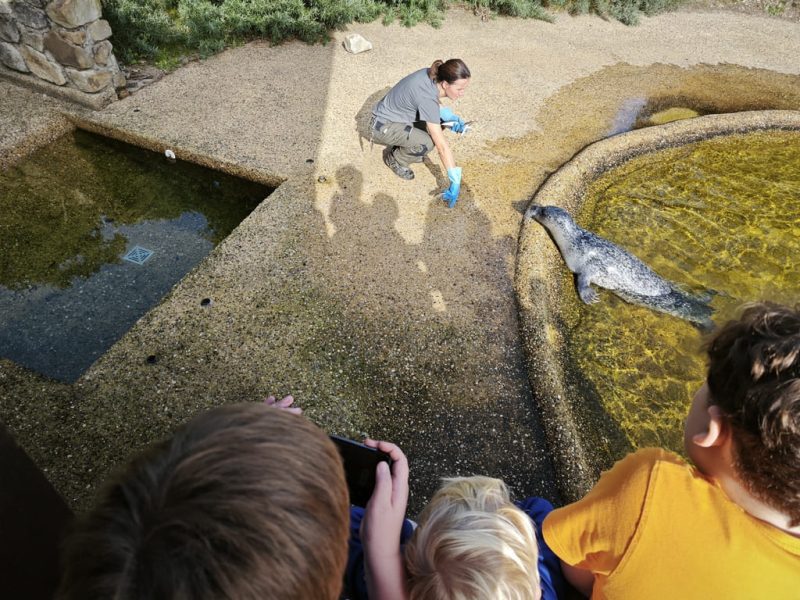 Im Anschluss dürfen die Schülerinnen und Schüler in Kleingruppen den Zoo erkunden. Dort gibt es so einiges zu entdecken: Pinguine, Zebras oder Tiger – viele verschiedene Tiere und nur wenige zum Kuscheln. Möchte man das, kommt man im Streichelzoo voll auf seine Kosten. Aber auch die Fütterungen von Seehunden, Störchen oder Pinguinen werden von den Kindern gerne besucht.