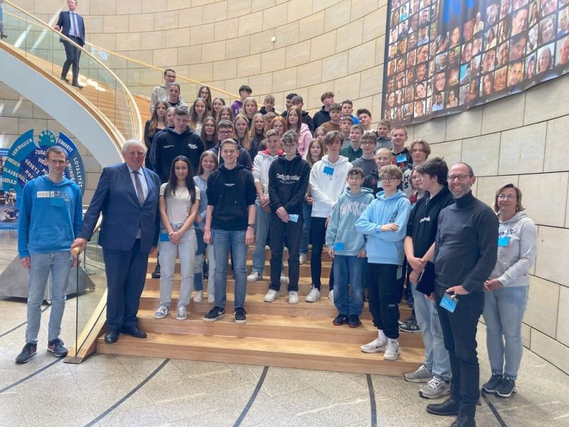 Alle zwei Jahre ist es wieder so weit: Die Schülerinnen und Schüler der Jahrgangsstufen 8 und 9 machen sich im Rahmen des Sozialwissenschaftsunterrichts auf den Weg nach Düsseldorf – und tauchen dort für drei spannende Tage in Politik, Medien und Wirtschaft ein.